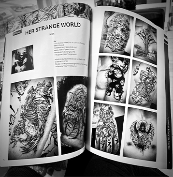 Bien que plusieurs cordes soient accrochées à son arc, retrouvez le blackwork solide de HER référencé dans l’annuaire de tatoueurs 2025 de Tattoo Life magasine.